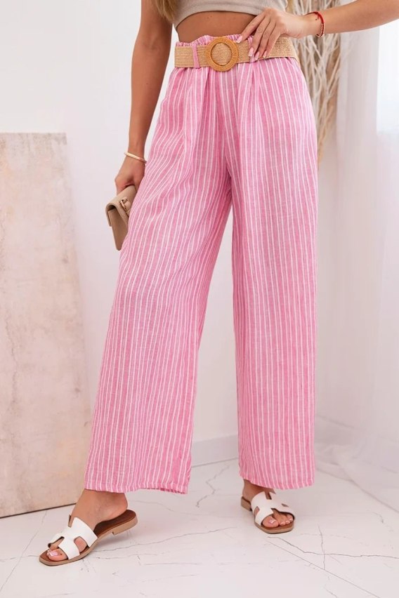 Spodnie damskie wiskozowe w paski z szeroką nogawką różowe