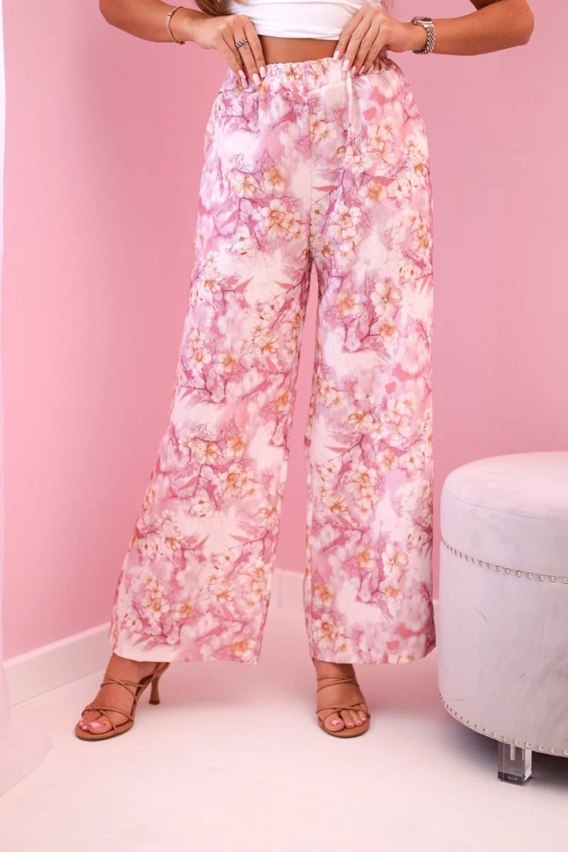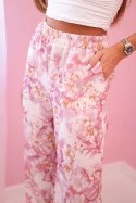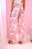 Spodnie damskie z szeroką nogawką w kwiaty różowe