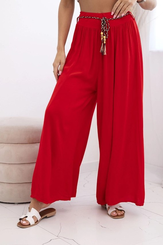 • Spodnie damskie z wiskozy z szeroką nogawką czerwone
