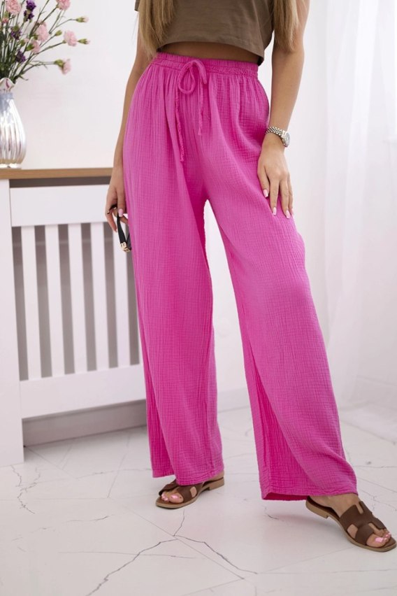 • Spodnie muślinowe z szeroką nogawką różowe