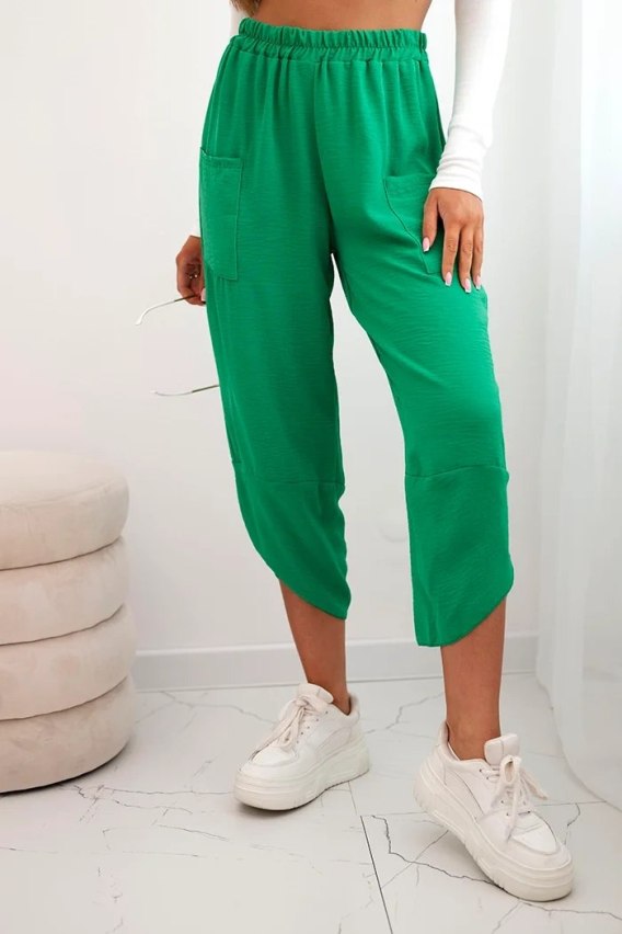 • Spodnie z szeroką nogawką i kieszeniami zielone
