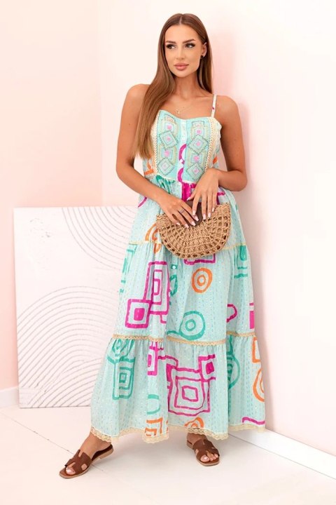 Sukienka damska bawełniana z kolorowym wzorem miętowa