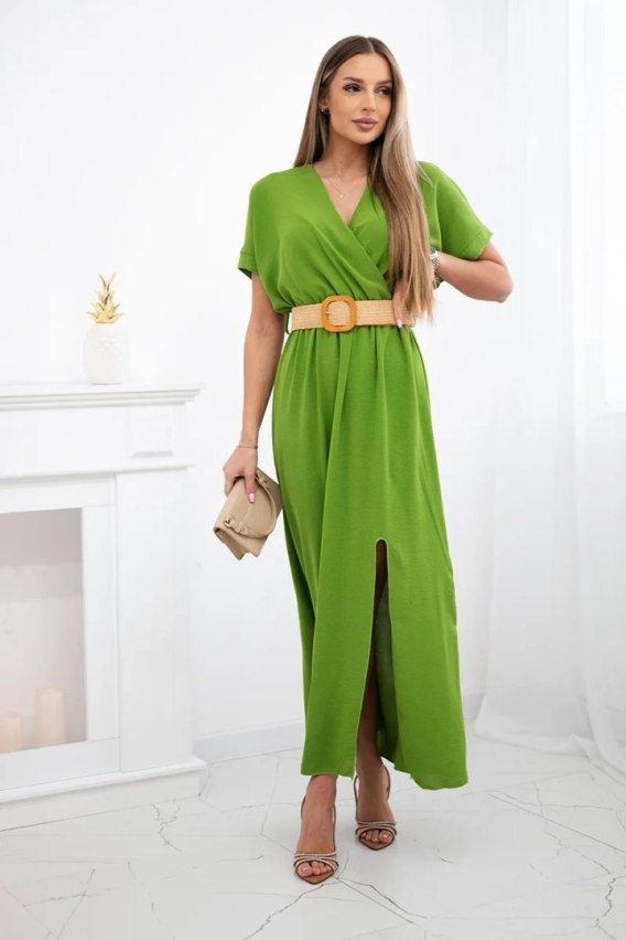• Sukienka długa z ozdobnym paskiem oliwkowa