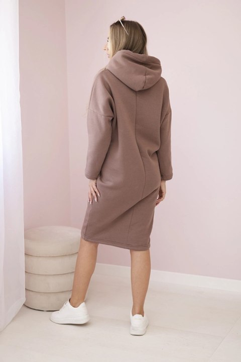 • Sukienka z kapturem i rozcięciem na boku mocca