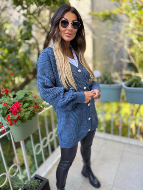 Sweter zapinany na guziki to elegancki i modny element garderoby, który łączy w sobie tradycję z nowoczesnym stylem. Charakterystyczną cechą tego typu swetra jest jego długość świetnie nadająca się na każdą okazje oraz pogodę. Współgra z idealnym wykorzystaniem guzików do zapinania. Splot tureckiego swetra jest bardzo finezyjny, co nadaje mu unikalny wygląd. Guziki pozwalają na regulację głębokości dekoltu, co jest praktyczne i umożliwia dostosowanie swetra do własnych preferencji. Sweter dostępny jest w różnych kolorach. Swetry są wykonane z miękkich i przyjemnych w dotyku materiałów, co zapewnia komfort noszenia. Jego misterny splot i guziki nadają mu wyjątkowy charakter, co czyni go popularnym wyborem w świecie mody. Rozmiar jest uniwersalny i będzie odpowiedni dla Pań w rozmiarze S, M, L, XL