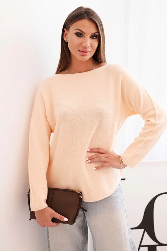 Sweterek damska z wiskozy z długim rękawem i okrągłym dekoltem morelowy