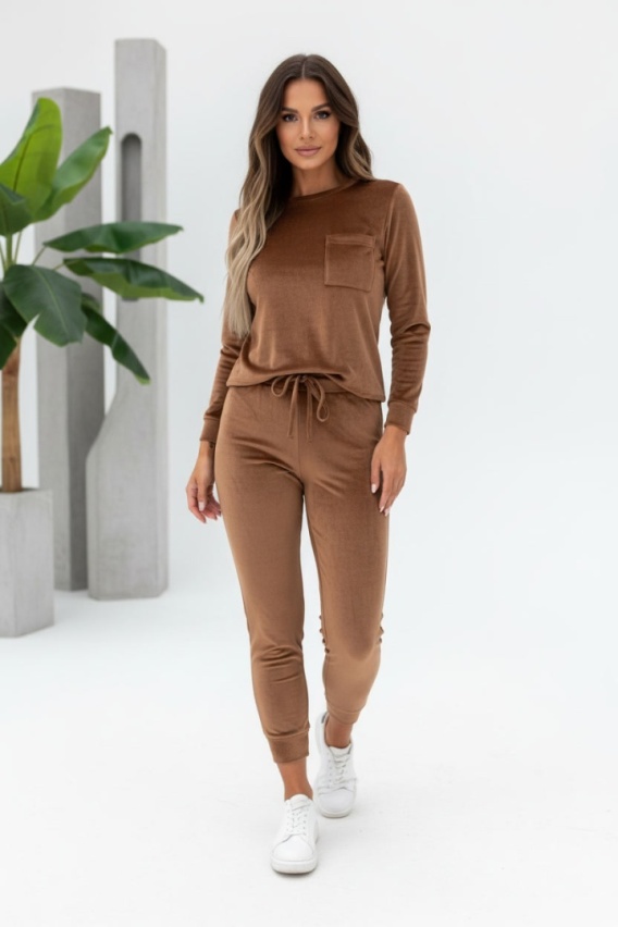 Welurowy komplet dresowy NATANIEL I czekolada I kieszonka I one size