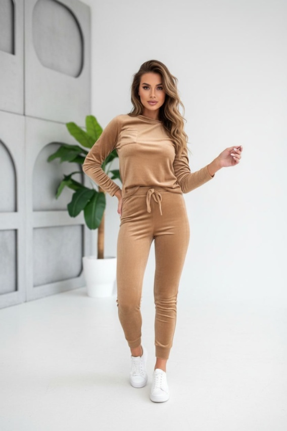 Welurowy komplet dresowy NATANIEL I karmelowy beż I kieszonka I one size