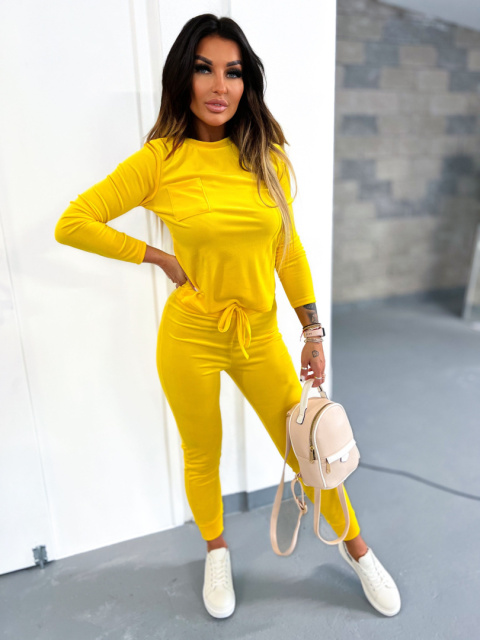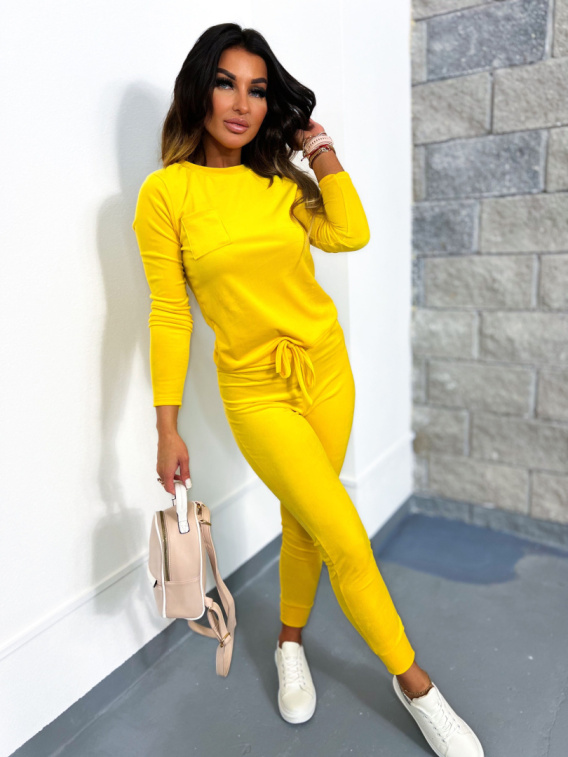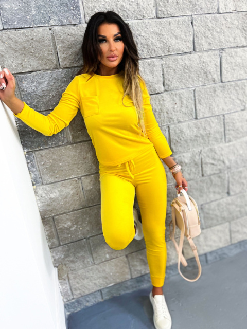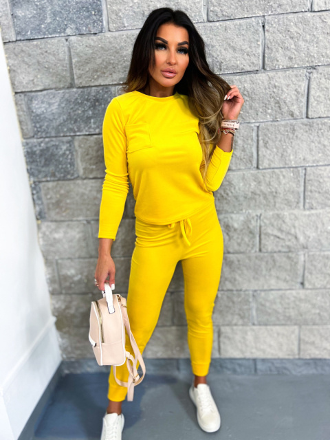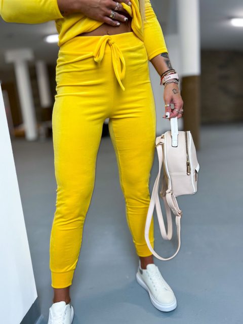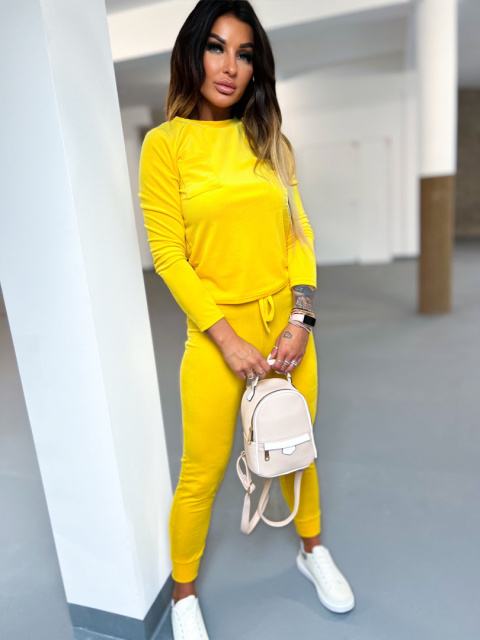 Welurowy komplet dresowy NATANIEL I żółty | kieszonka I one size