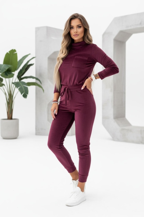 Welurowy komplet dresowy NATANIEL śliwka | kieszonka I one size